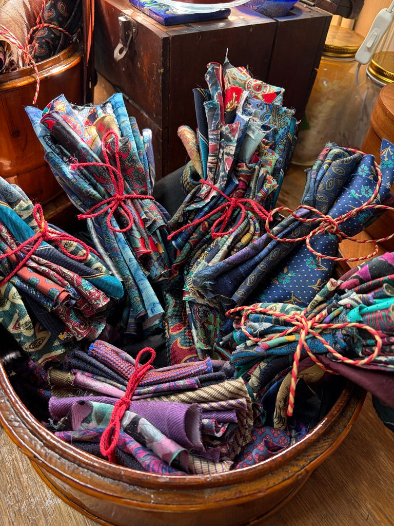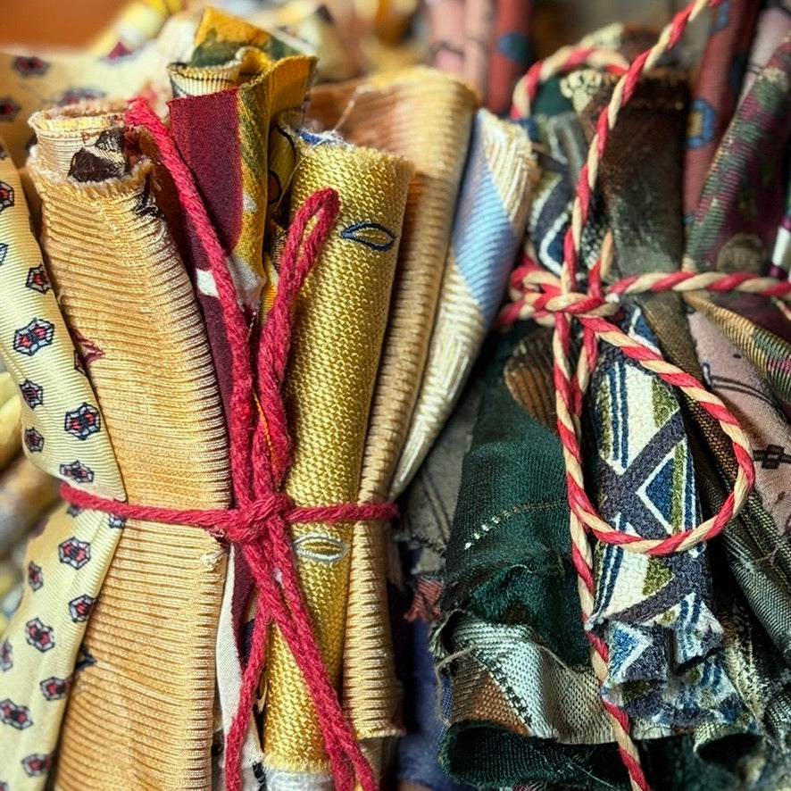 Participants are very welcome to bring one or more silk ties of their own if they wish, particularly if they hold personal or sentimental meaning. Using personal materials is entirely optional, and participants may also choose to work solely from the supplied textile archive.